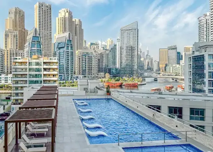 Die 167 m^2 große Ferienwohnung Royal Marina Experience Lavish 2Br Waterfront View Dubai befindet sich im Bezirk Sheikh Zayed Road von Dubai, 10 Gehminuten von der U-Bahn-Station Jumeirah Lake Towers entfernt. Die Gäste können sich nach einem langen Tag in einem Dachpool entspannen.